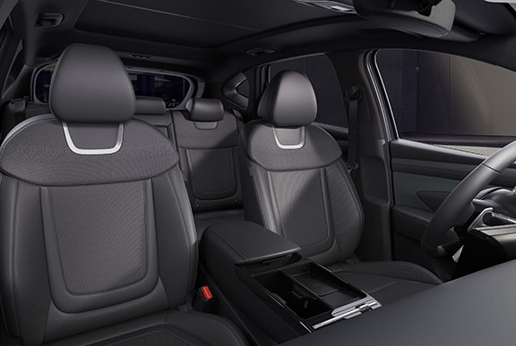Disfruta del máximo confort en las cinco plazas de la TUCSON. El generoso espacio para las piernas de las plazas traseras ofrece espacio más que suficiente para relajarse a bordo.